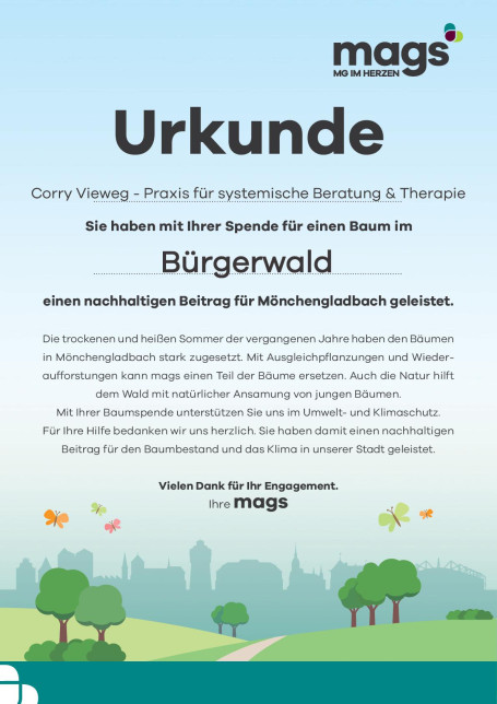 2023 wurde ein Baum von der Praxis für den Bürgerwald der Stadt Mönchengladbach gepflanzt